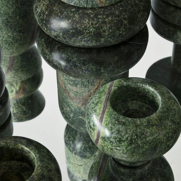 A playful set of five stackable and reconfigurable candle holders that create domestic sculptural interventions. The pattern and texture of each piece is entirely unique, depending on the block of marble it was carved from, which creates an individualistic quality in every product.